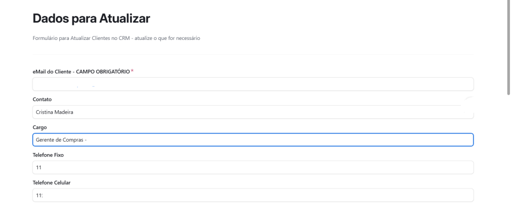 Formulário para cadastrar Clientes Novos após a consulta de "CNPJ Livre"