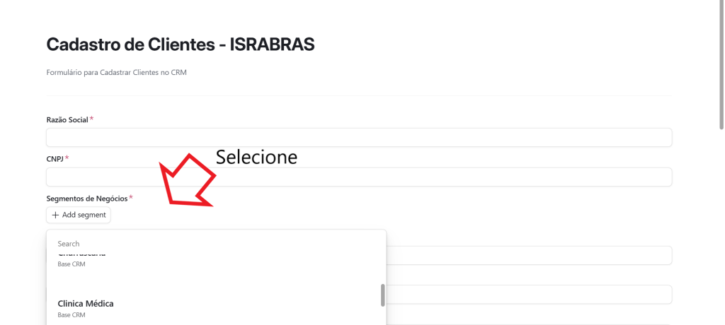 - Segmentos – Escolha o mais adequado para o seu cliente.