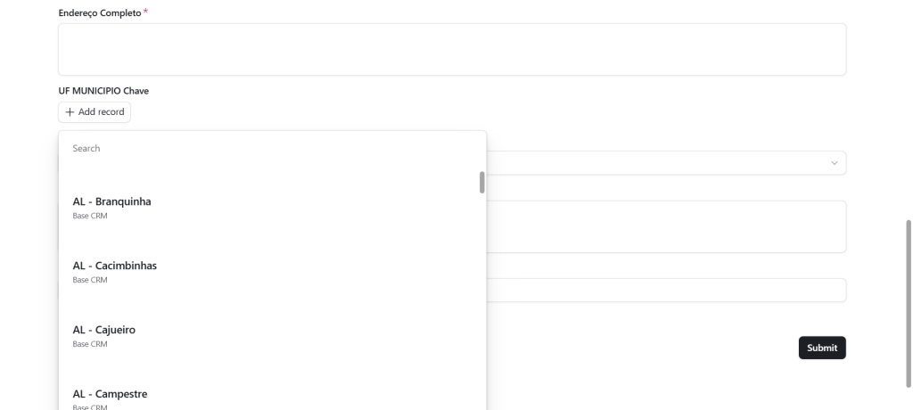 - Chave UF + Município – Aqui você faz o seguinte. Filtre primeiro a UF e selecione a cidade (município) clicando em cima