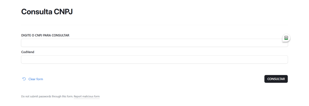 - Acesse o botão “Consulta CNPJ”